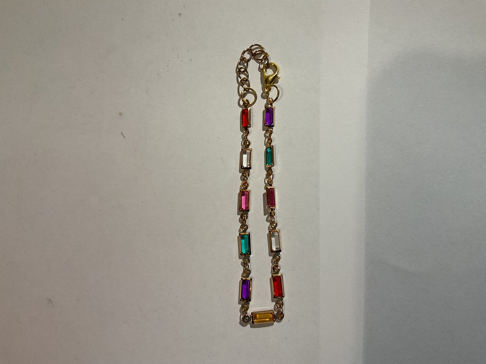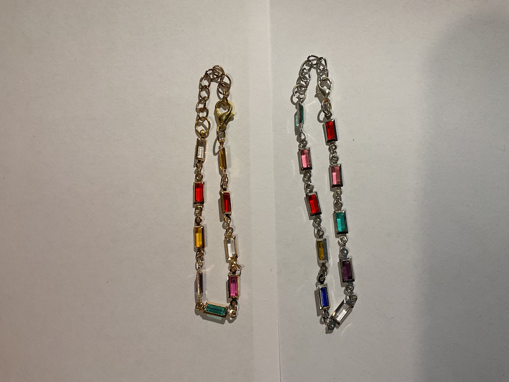 Rektangel formade färgade glasbitar.