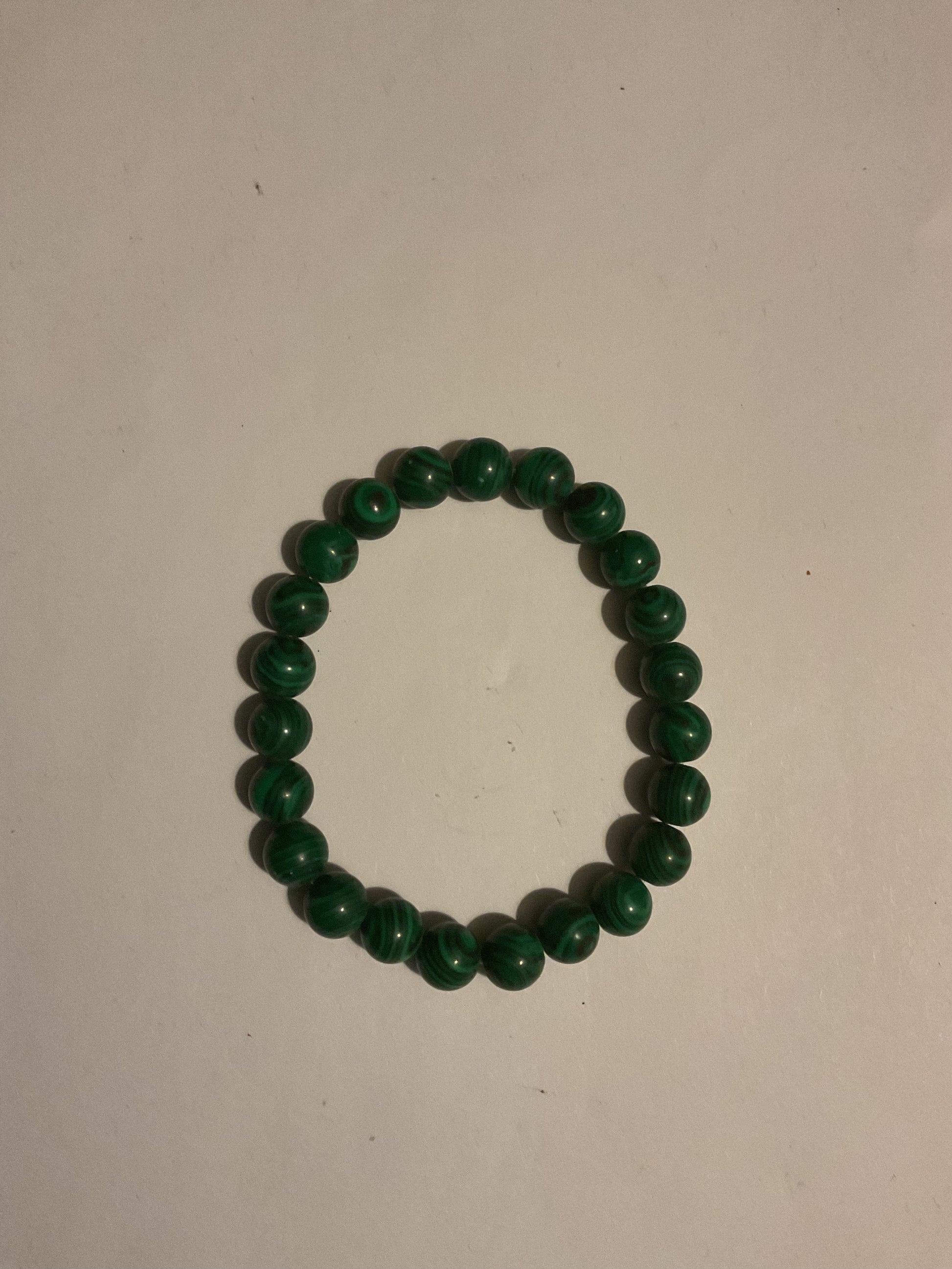 Armband i Malakit pärlor på elastisk nylontråd från 16 cm.