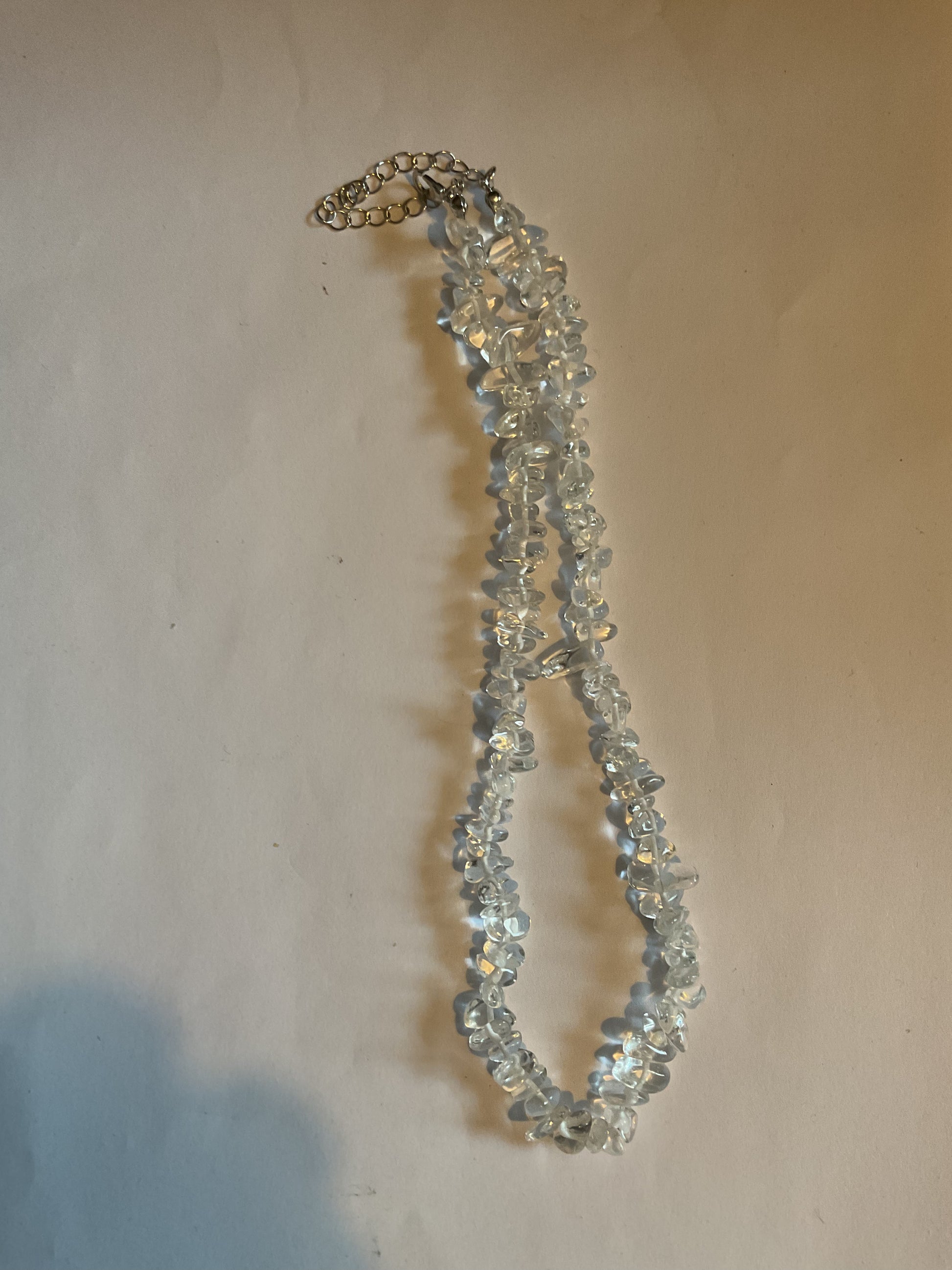 Halsband med Bergskristall. Nylontråd med förlängningskedja. 45+5=50 cm.
