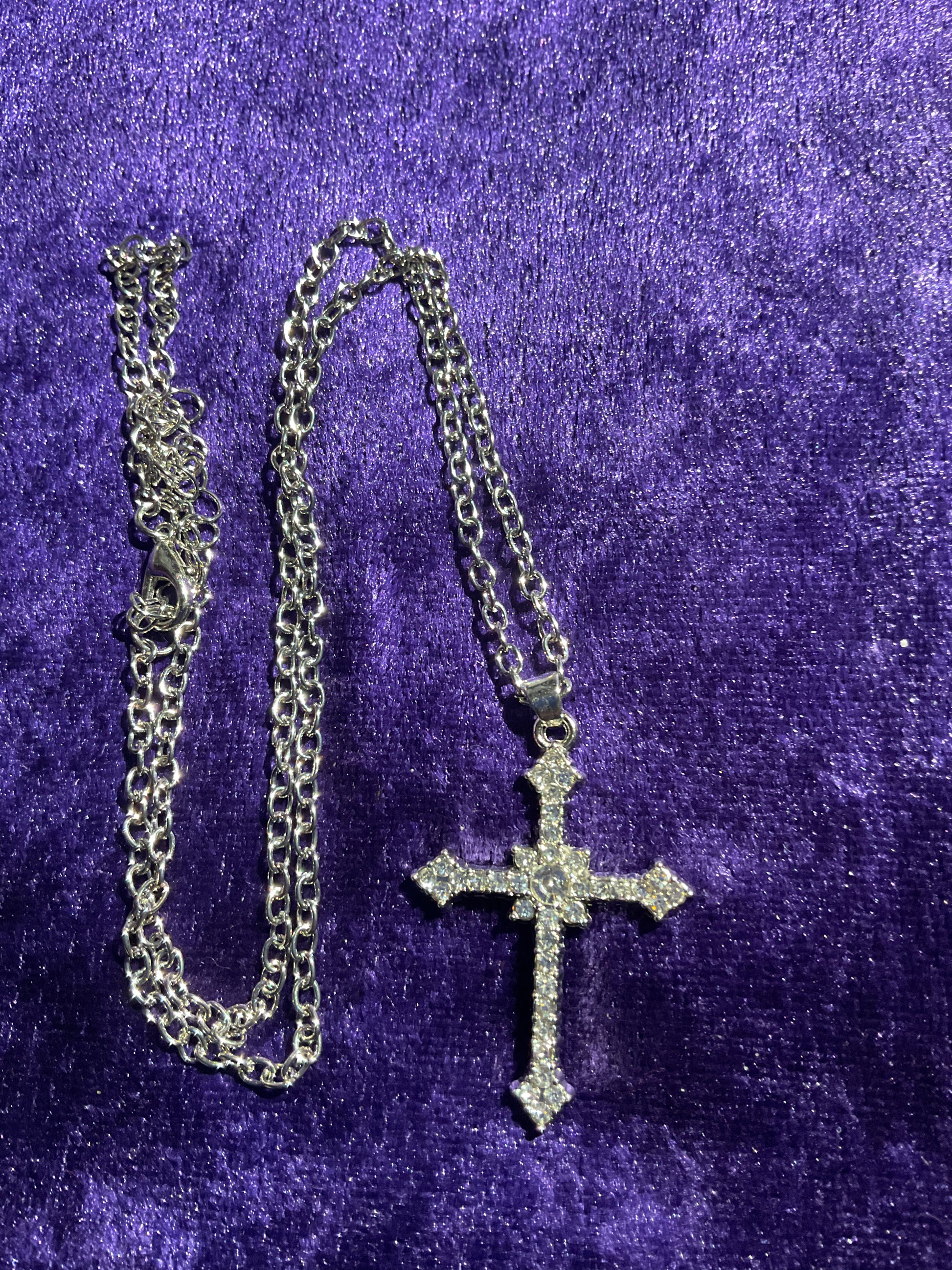 Halsband, hänge. Kors guldfärgad med pärlor.