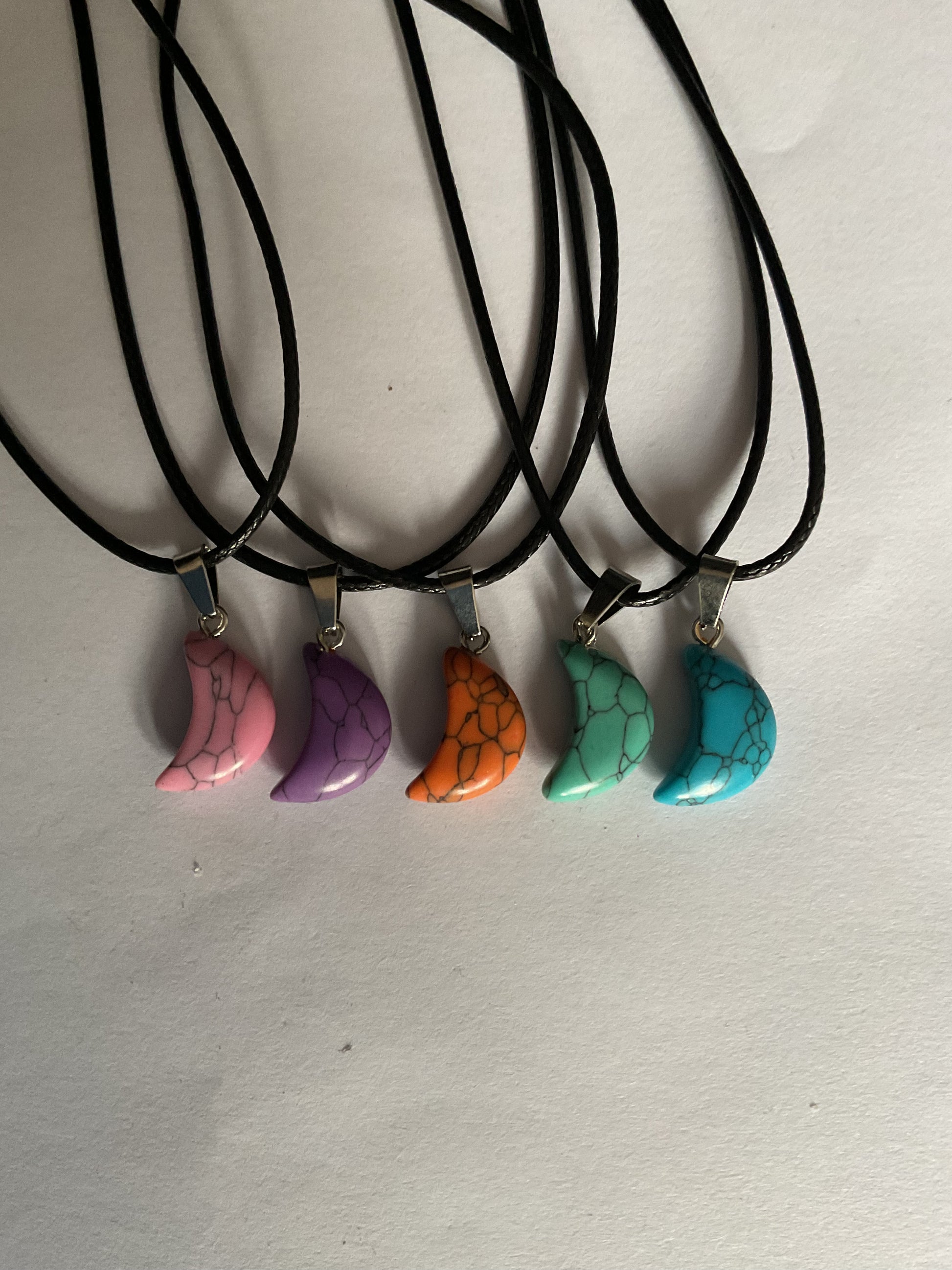 Nymåne i sten. Beställ från vänster och nämn färg. 2cm. Rem 40 cm+5 cm.förlängningskedja.