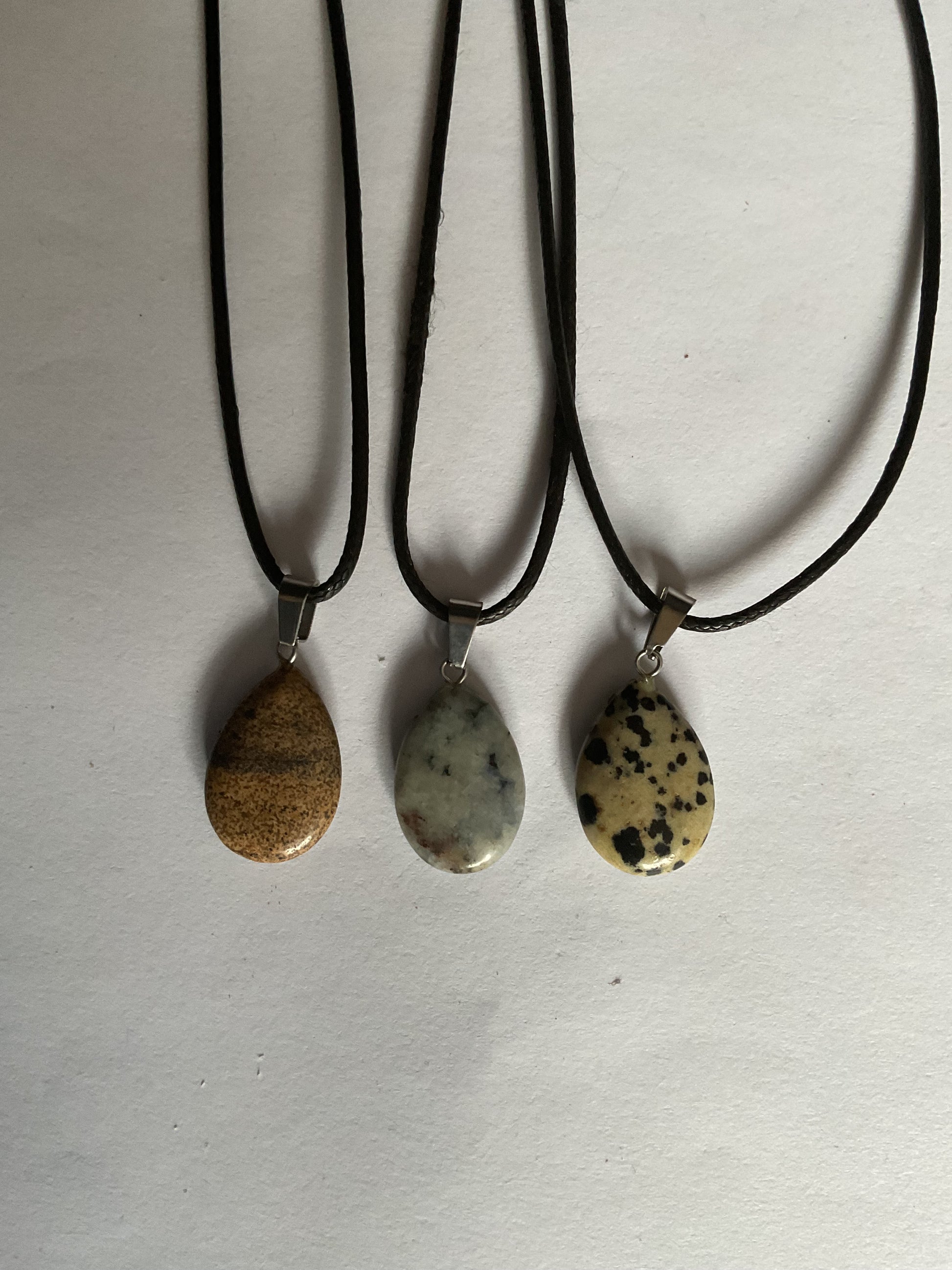 Hänge i ädelsten 2 cm. Rem 40 cm+ förlängningskedja 5 cm. Beställ från vänster. Nämn färg.