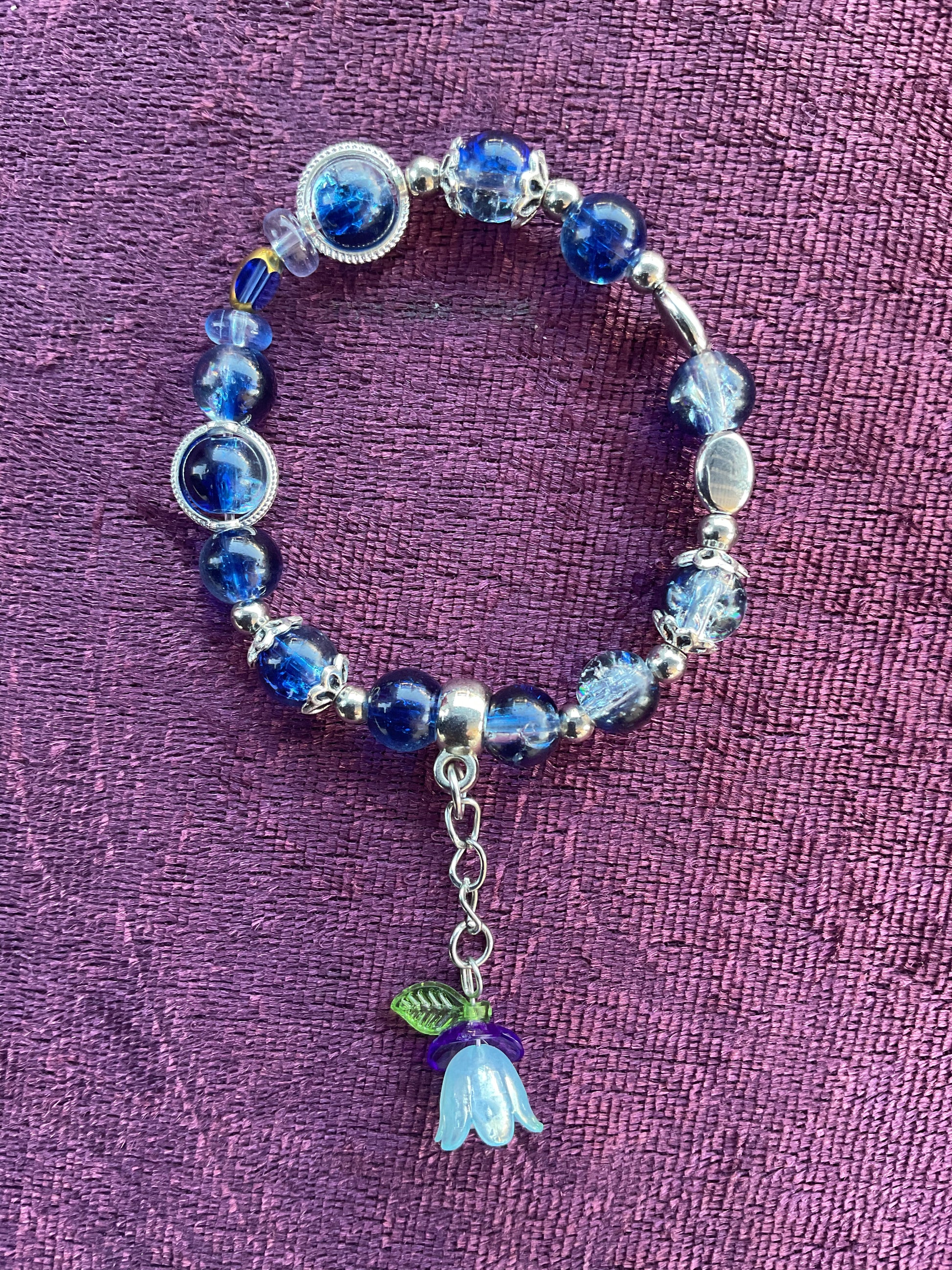 Armband med elastisk nylontråd. 14 till 18 cm. Med krackelerade pärlor.